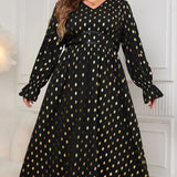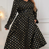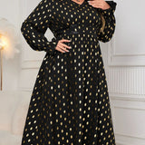 Envie de vous démarquer lors de votre prochaine soirée ? Cette robe noire et ses motifs dorés captent la lumière pour un look inoubliable.