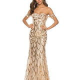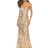 Cette création offre une coupe ajustée qui met en valeur la silhouette tout en garantissant confort et maintien grâce à sa confection en 100% polyester. Le bustier sans bretelles et son style off-shoulder dévoilent les épaules avec finesse pour un look glamour et distingué. Les sequins dorés reflètent la lumière avec élégance, parfaits pour illuminer chaque soirée ou occasion spéciale.